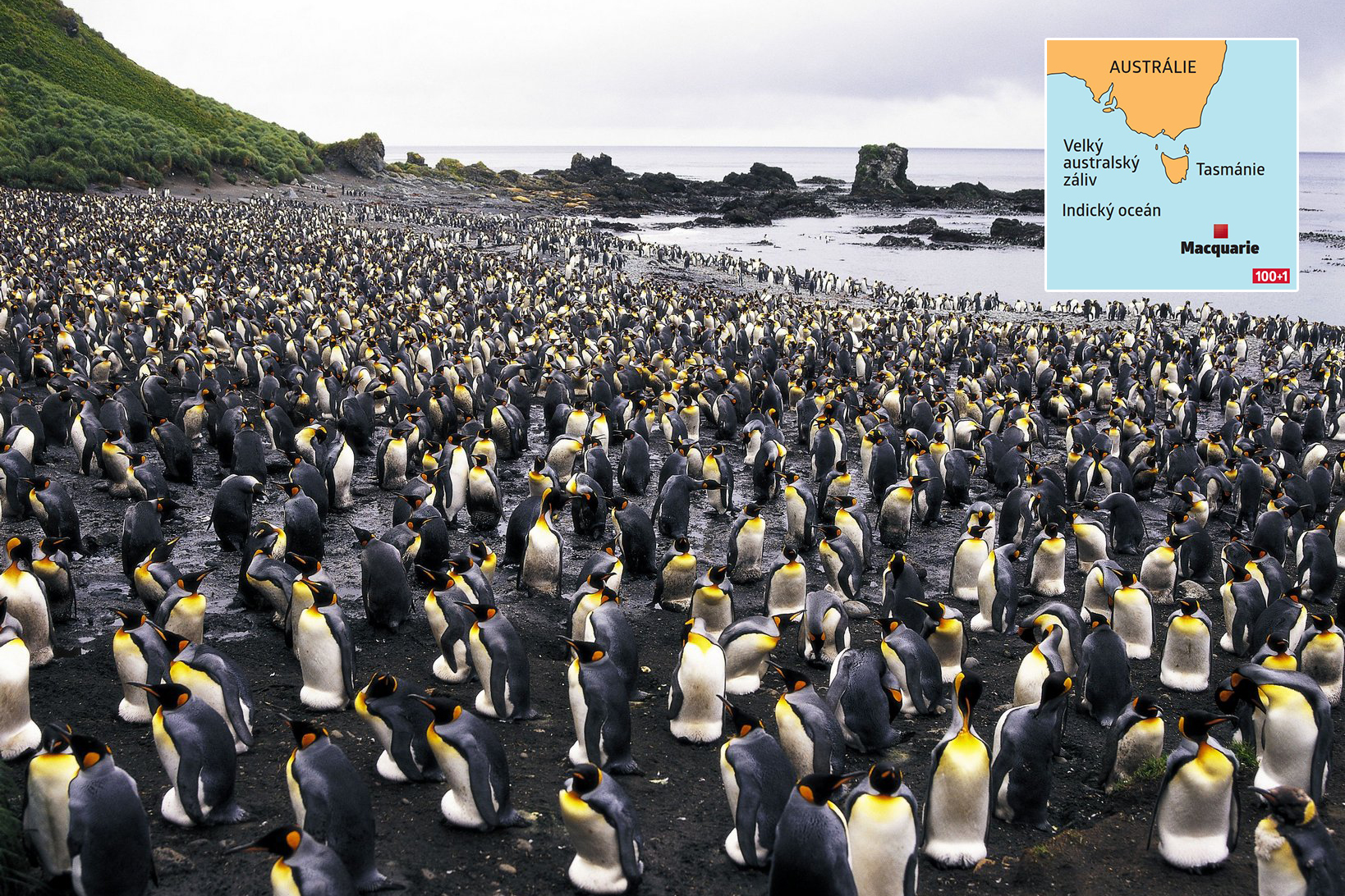 K Macquarie připlouvají lachtani i rypouši, ale především je domovem nekonečných zástupů tučňáků.