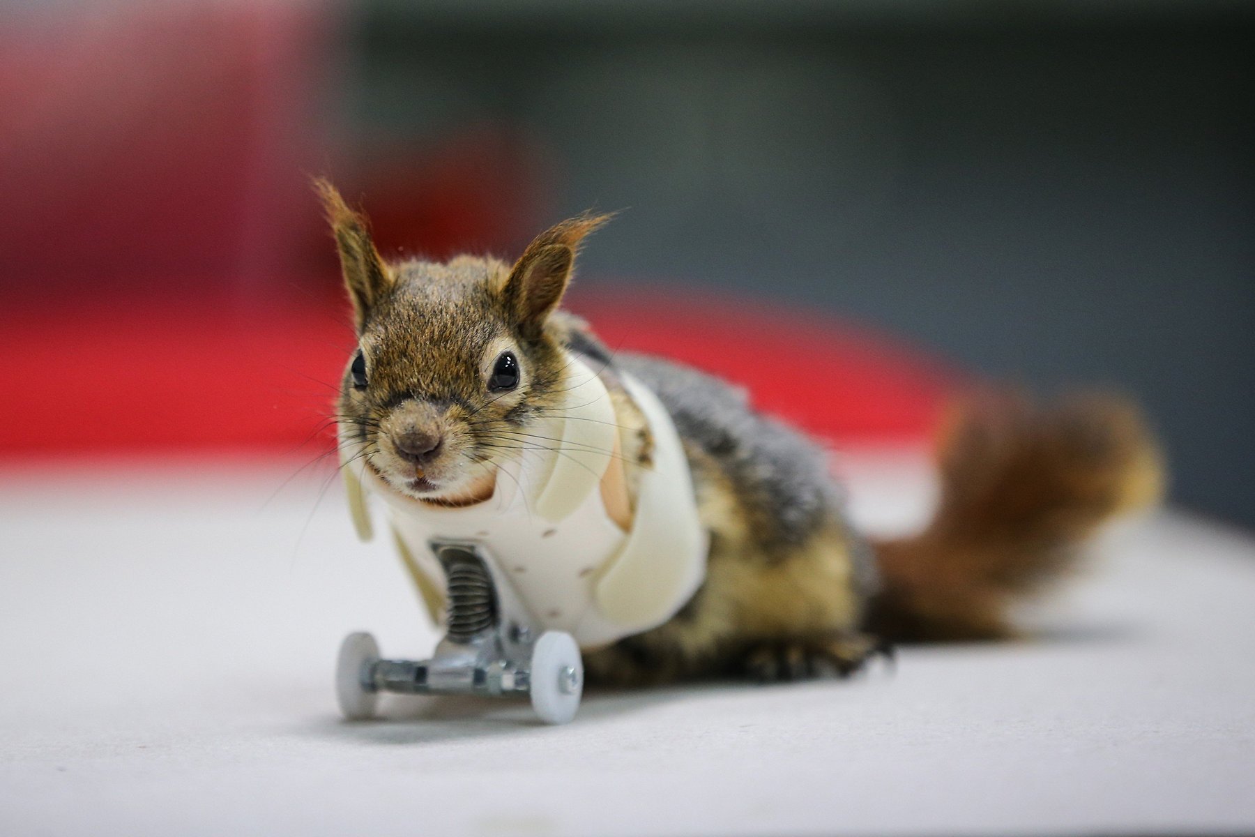 Veverka na kolečkách: Zraněný hlodavec získal náhradní přední končetiny