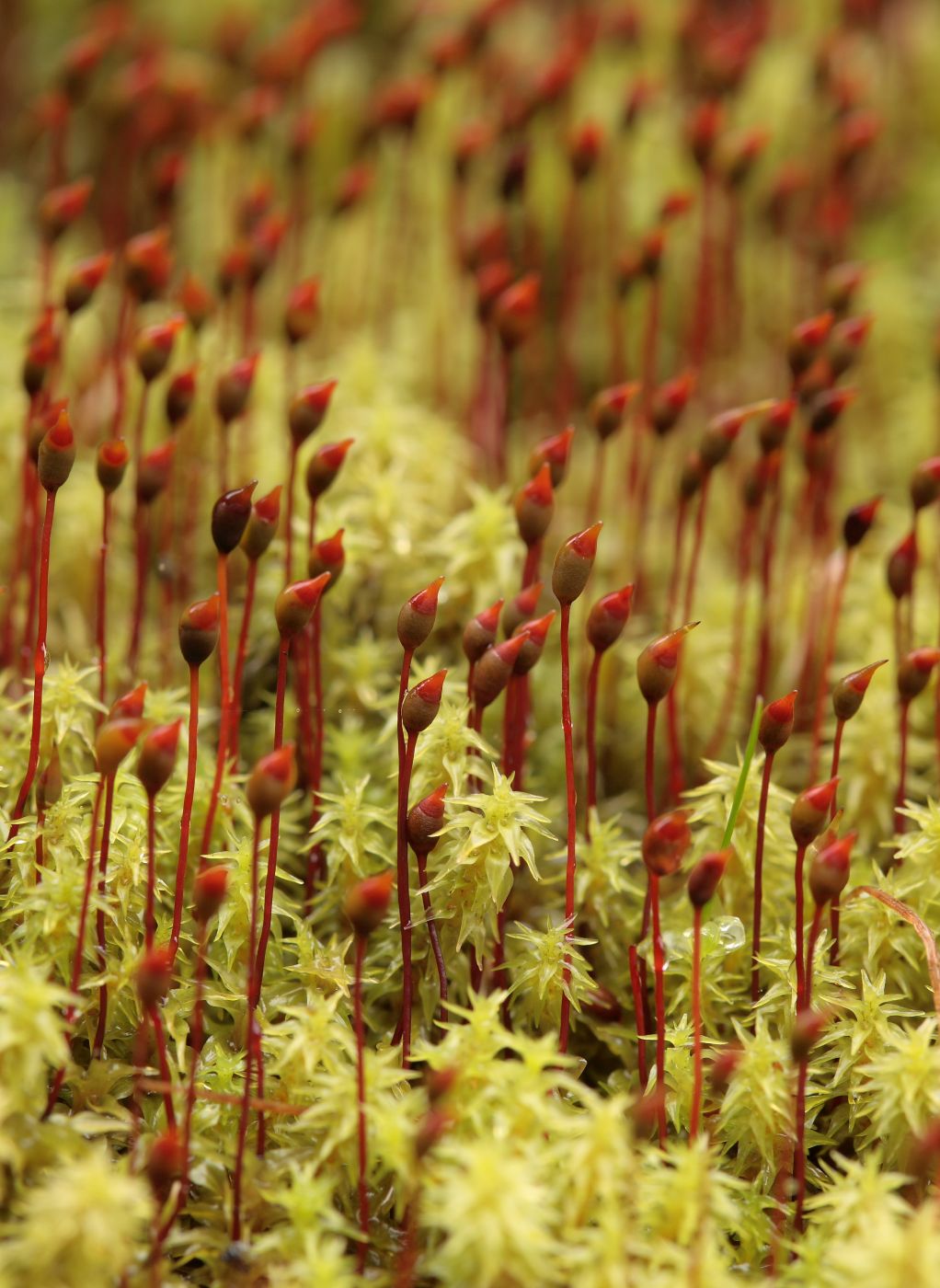 Že mechy nemusí být vždy jen zelené, dokazuje např. rašeliník ostrolistý (Sphagnum capillifolium)