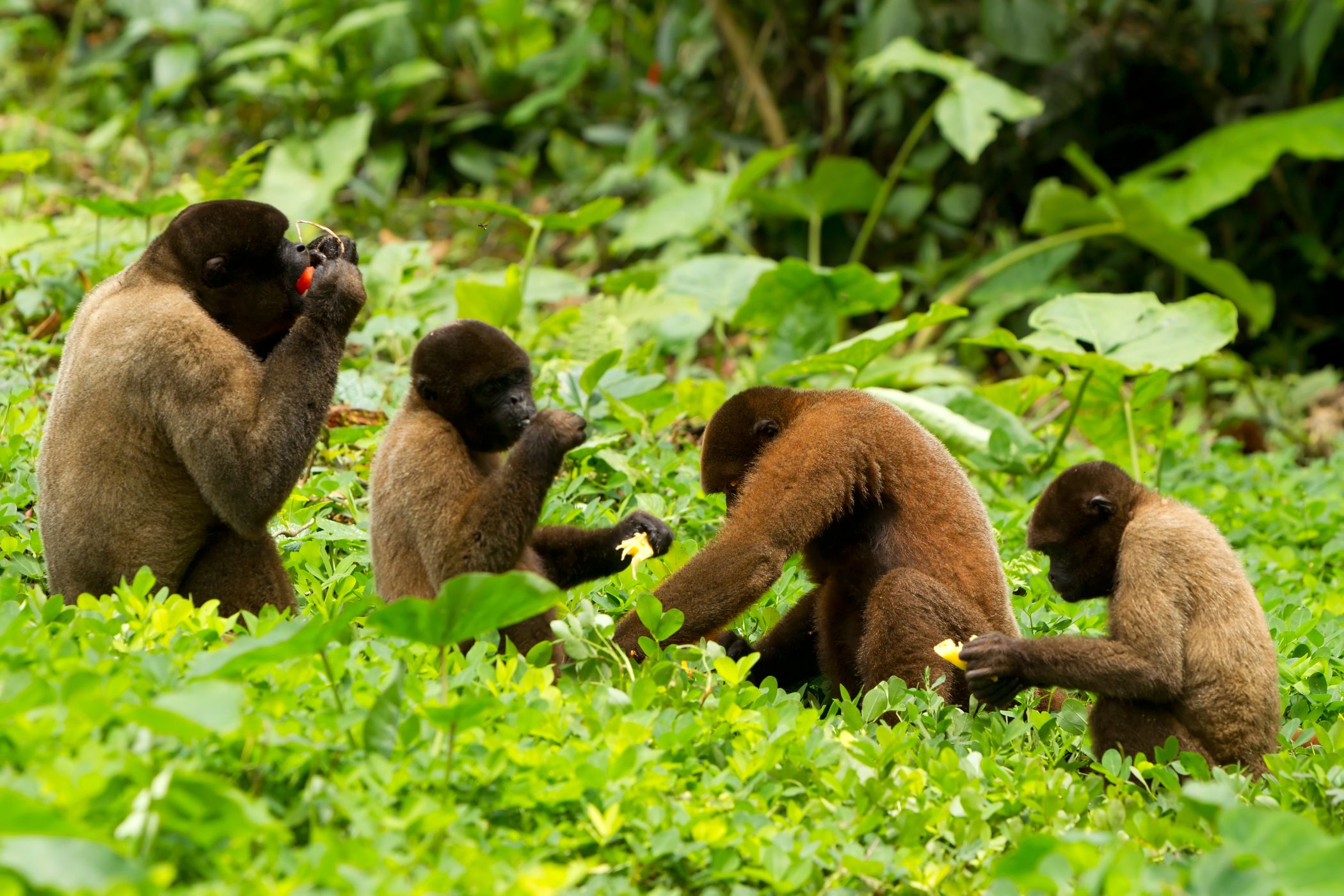 Chápani se živí ovocem, listy, semeny, květy a bezobratlými živočichy. Na snímku je zachycena skupina chápanů vlnatých v ekvádorské džungli.