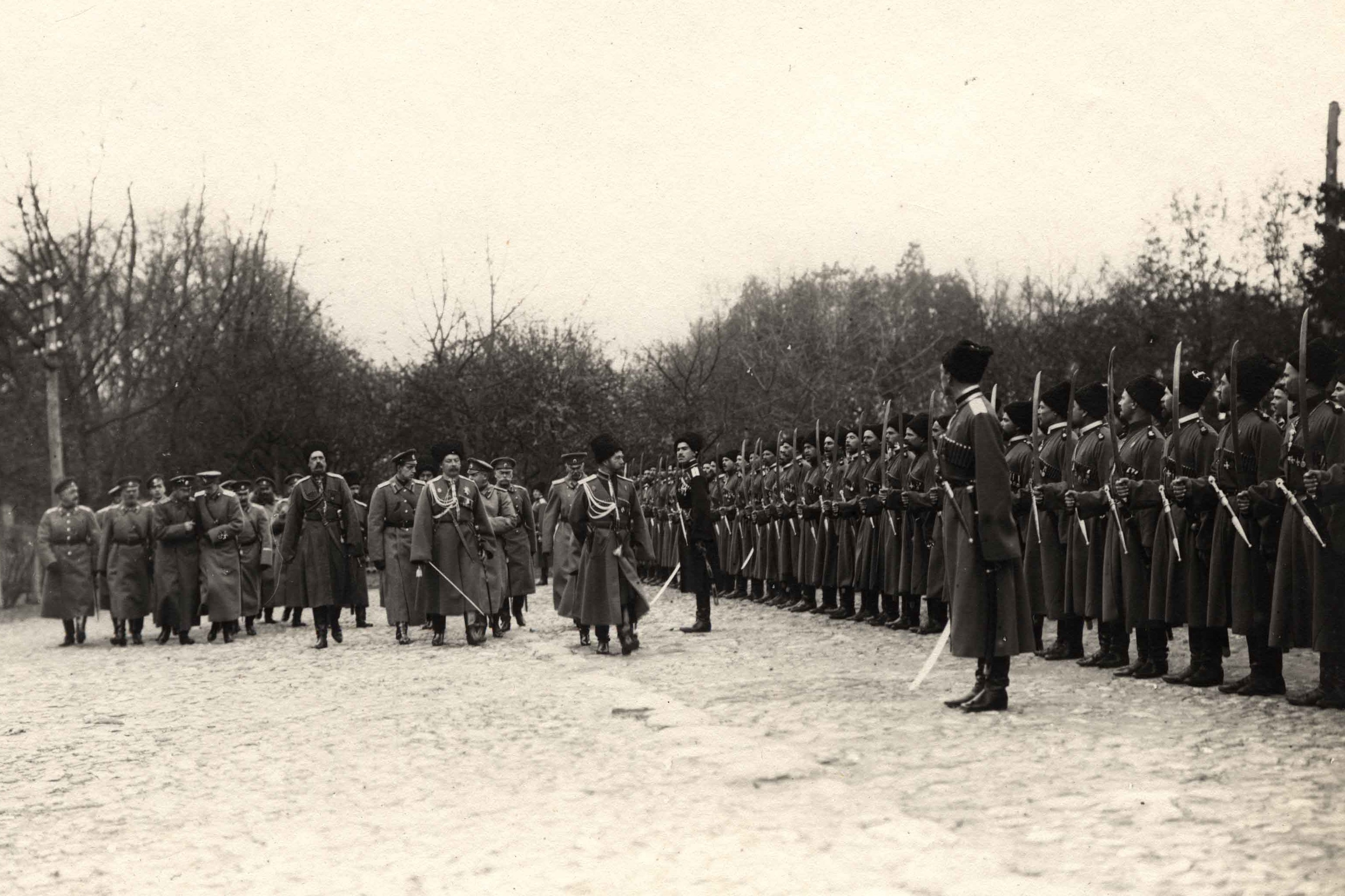 Inspekce kozáckého oddílu, sám panovník se rád objevoval na veřejnosti v kozácké uniformě. Tito muži tvořili společně s dělostřelci nejspolehlivější část carského vojska