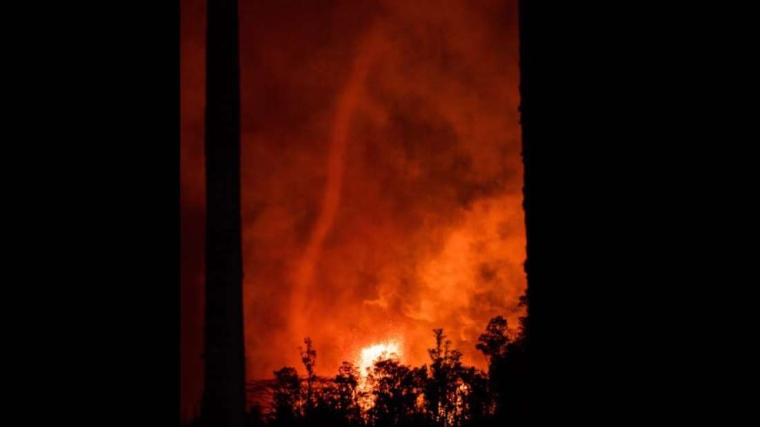 Vulkanické tornádo, čili lávanádo, během erupce sopky Kilauea