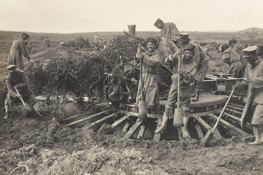Japonští vojáci se připravují na obléhání Čching-taa. Plüschow raději před japonskou pohostinností ulétl do Číny