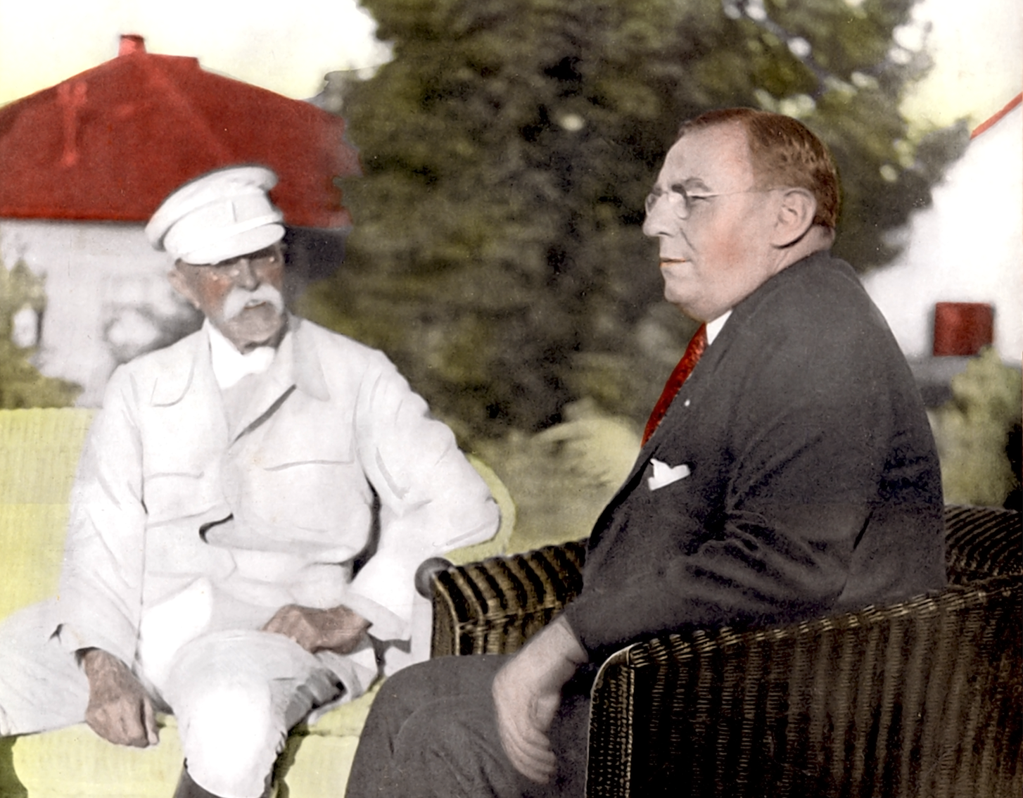 Starosta Chicaga Antonín Čermák během setkání s T. G. Masarykem ve slovenské Bystřičce, kde prezident v malebné krajině pod Fatrou trávil letní dovolenou.
