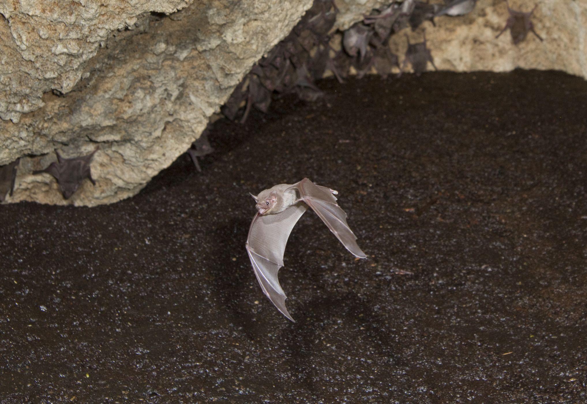 • Netopýr buldočí (Coleura afra) zachycený v nejmenované jeskyni v Keni.