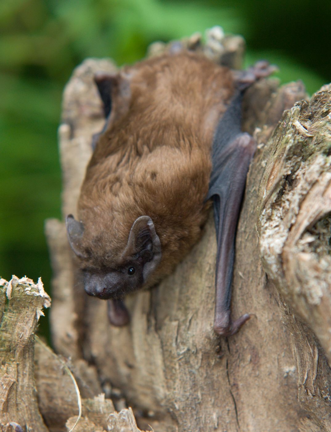 • Samička netopýra rezavého (Nyctalus noctula) Anežka. Netopýr rezavý se u nás vyskytuje celoročně.