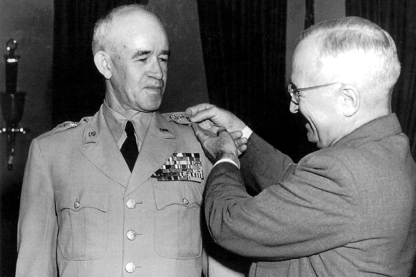 Americký prezident Harry Truman povyšuje Bradleyho na pětihvězdičkového generála