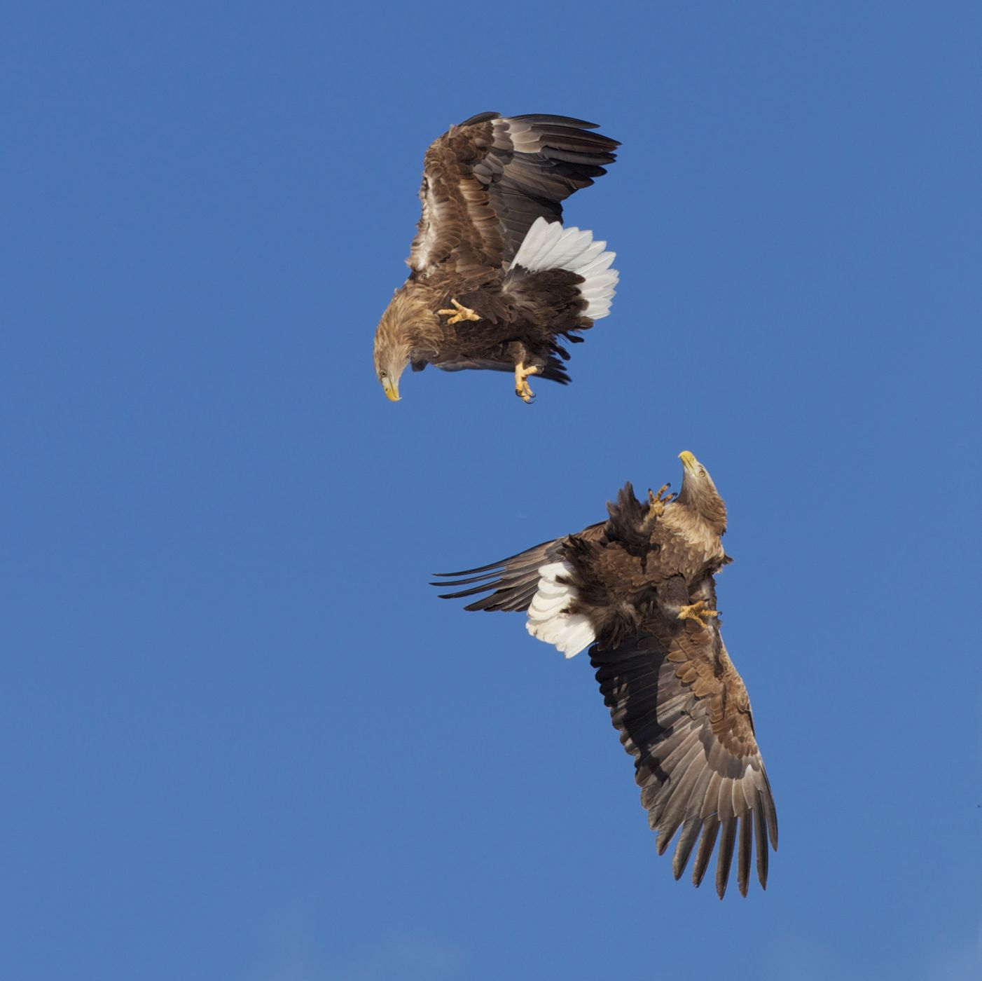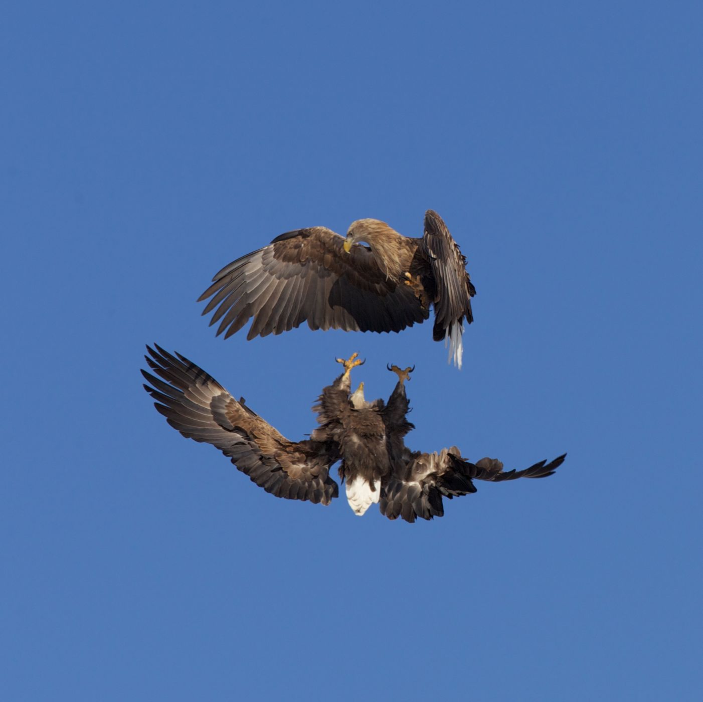 • Orlí pár se za hlasitého křiku vznese vysoko do vzduchu a pak se dravci střemhlav spouštějí směrem na sebe…