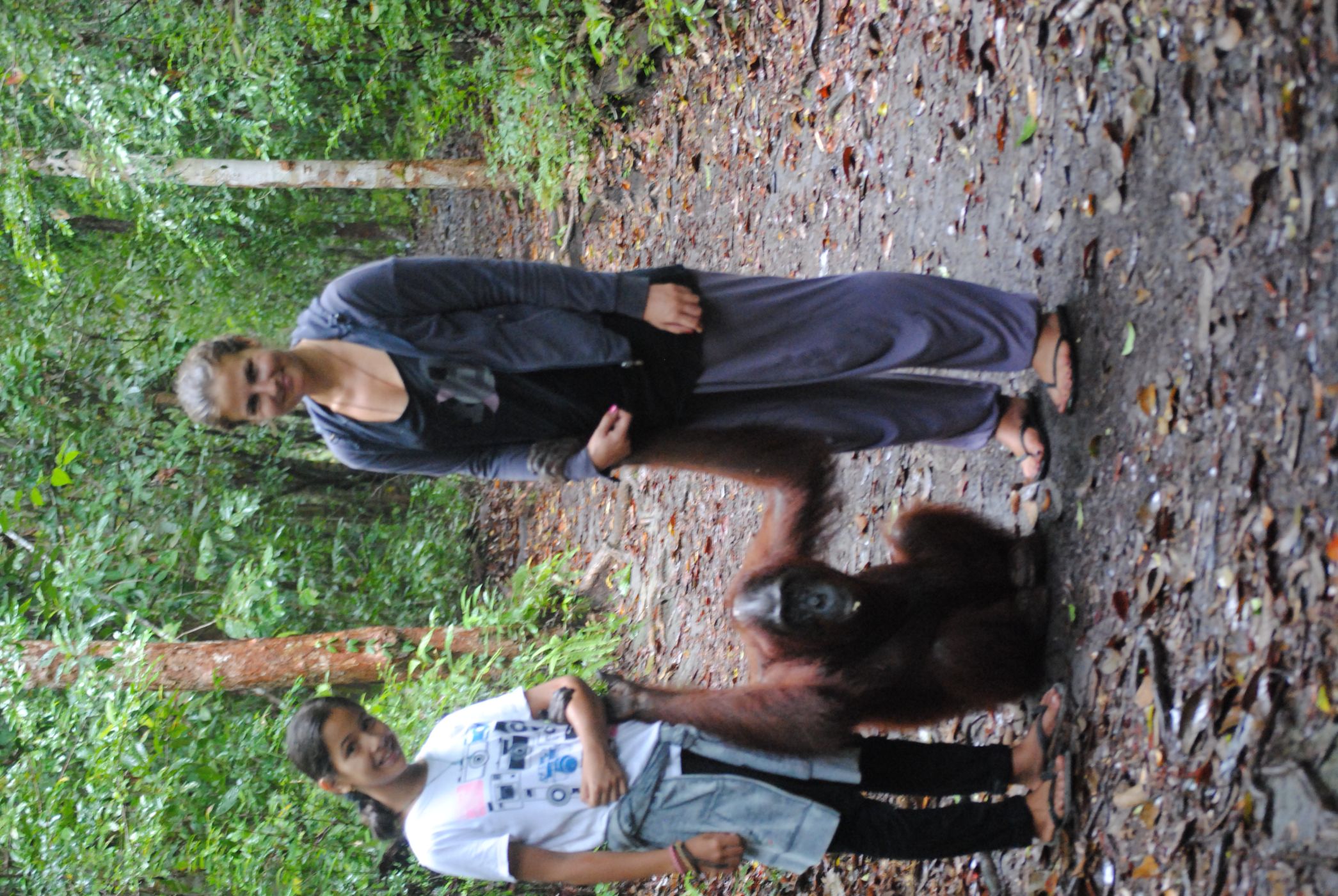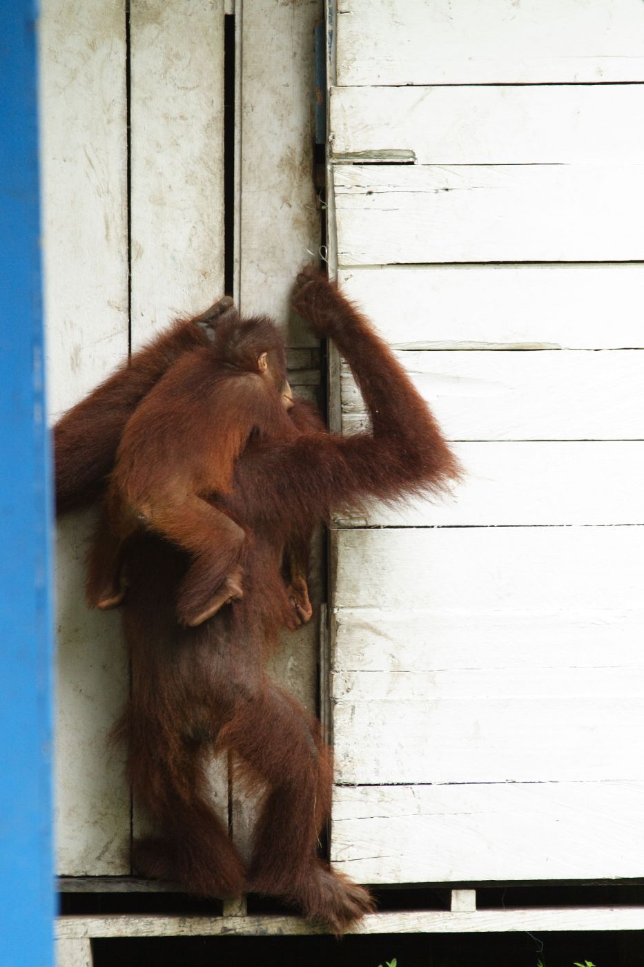 Orangutani v kempu Leakey opravdu nemají příliš zábran.