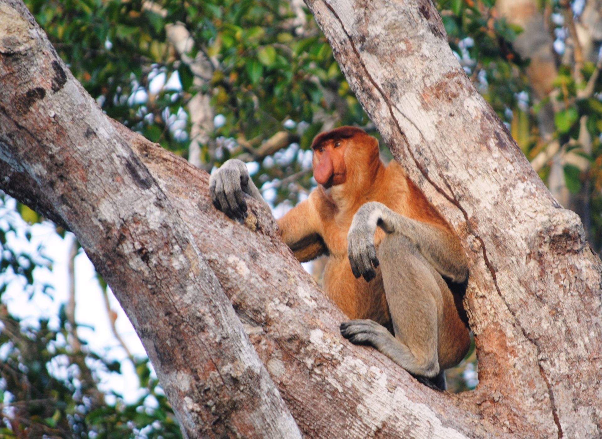 Kahau nosatý (Nasalis larvatus) patří mezi několik druhů primátů žijících NP Tanjung Puting.