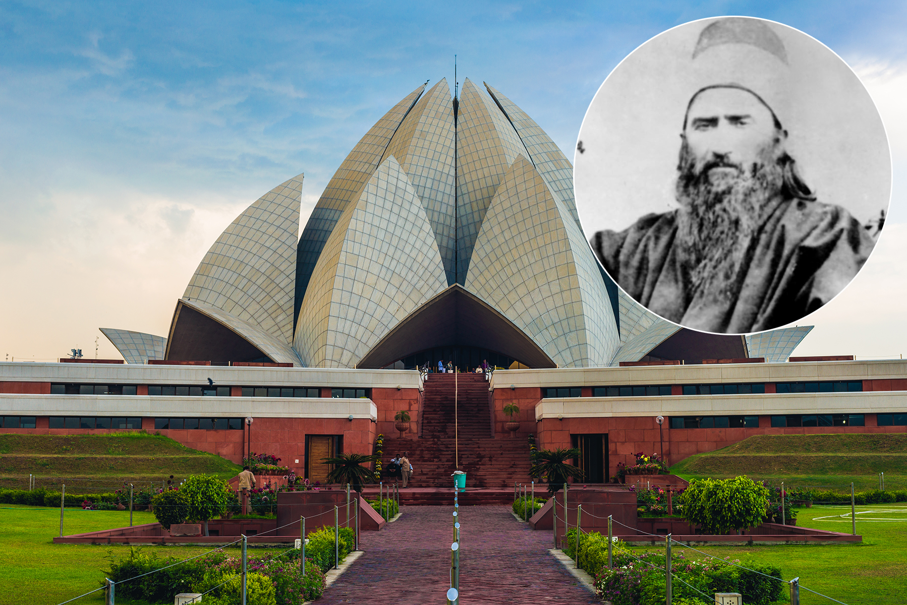 Bahaistický chrám v Novém Dillí vznikl v roce 1986 a dokáže najednou pojmout na 2 500 věřících. Ve výřezu prorok Bahá‘u‘lláh (1817-1892), následovník a pokračovatel proroka Bába.