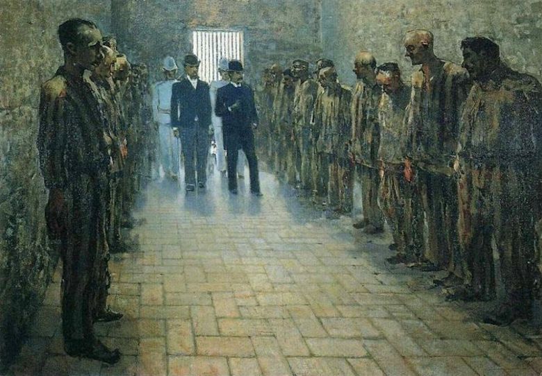 Crocco (první vpravo) ve věznici v Portoferraio