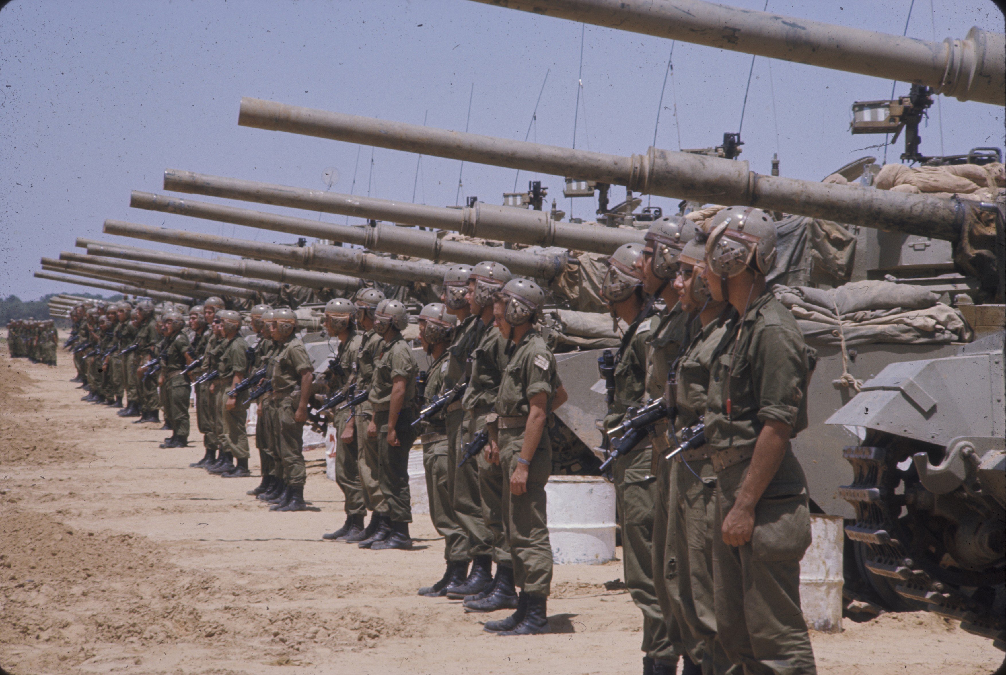 Izraelští tankisté nastoupení před tanky Centurion
