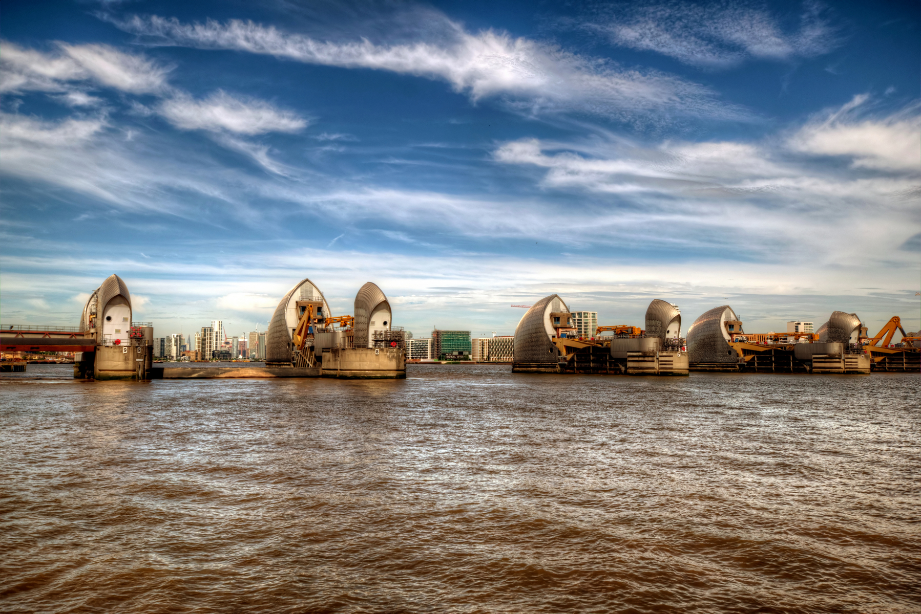 Mezi ohrožená města patří i Londýn, kam záplavové vlny z moře míří proti proudu Temže. Součást ochranného systému tvoří také známé bariéry na Temži, dokončené v 80. letech minulého století.