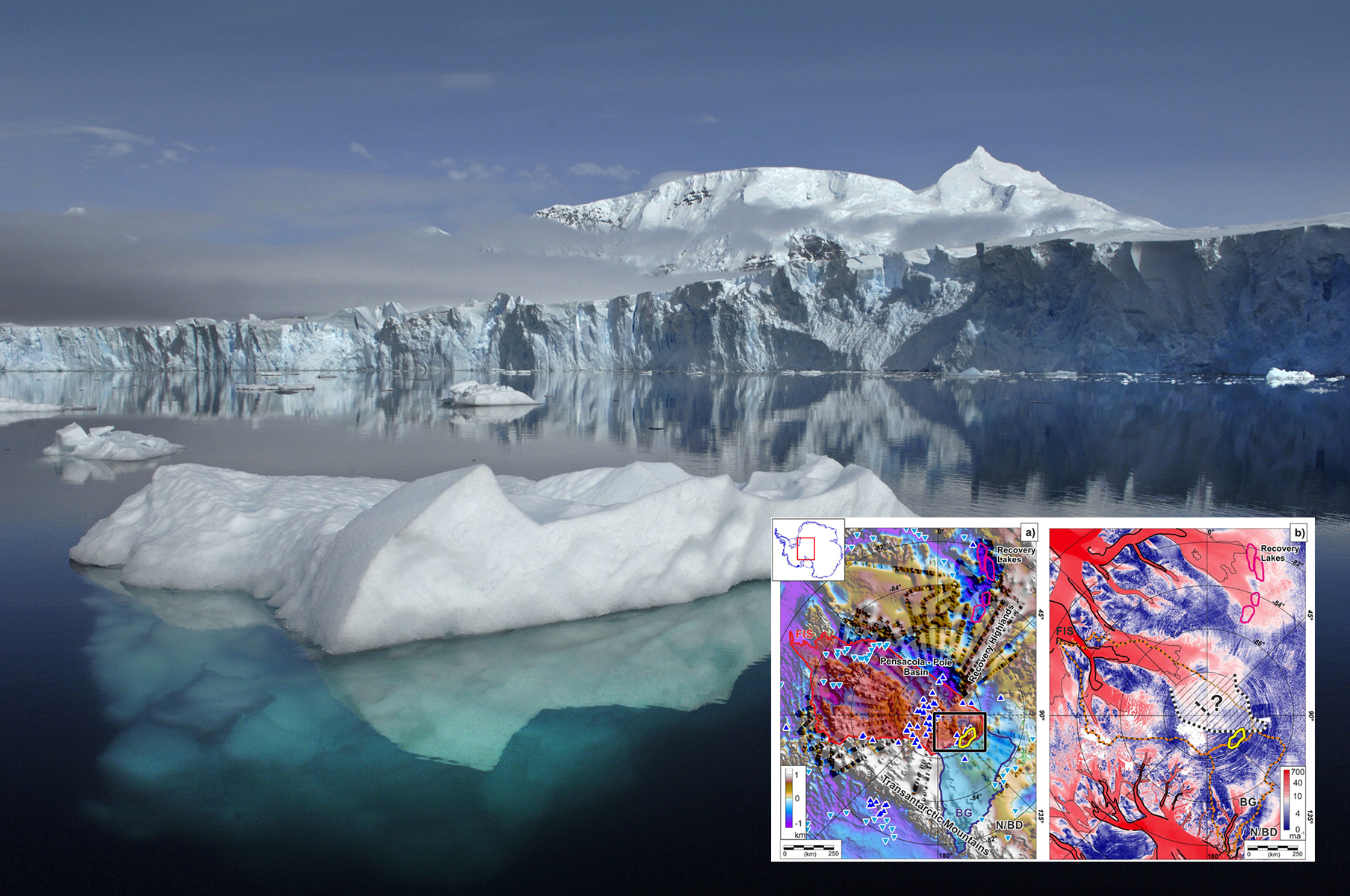 Ve výřezu data ze subglaciální topografie z průzkumu PolarGAP, ICEGRAV56,57 a BEDMAP258.