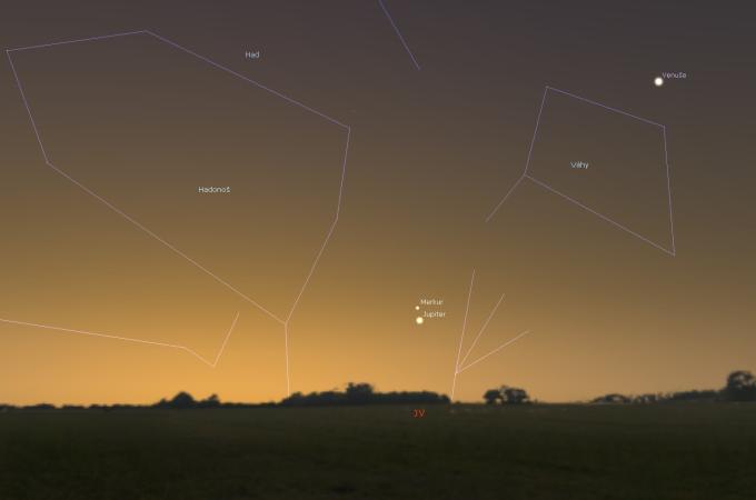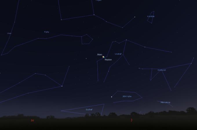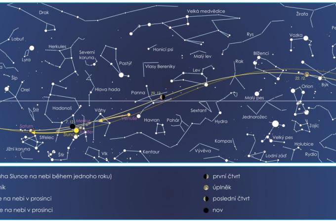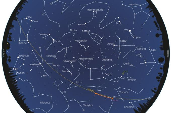 Noční obloha v prosinci: Zimní slunovrat i dostaveníčko rudé a modré planety