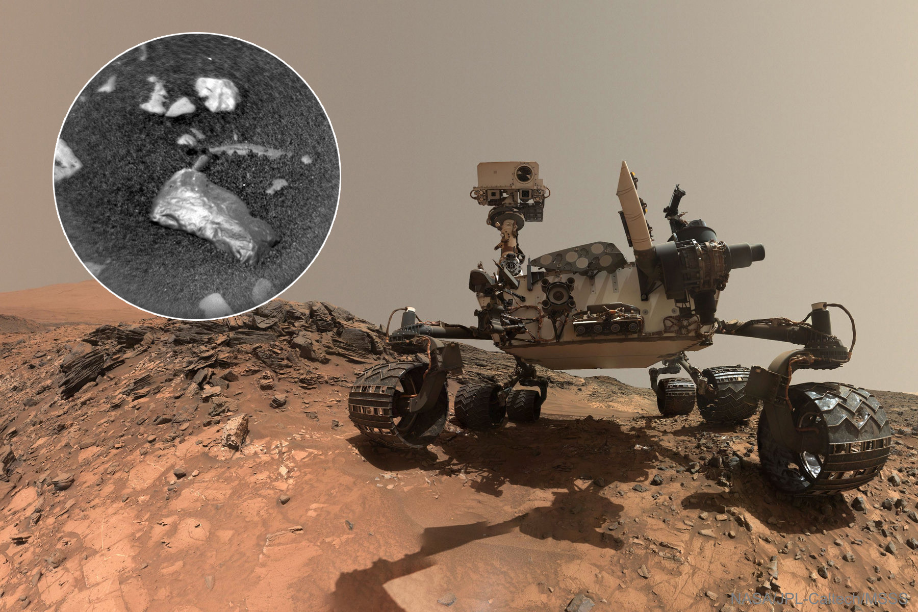 Překvapení z Marsu: Robot Curiosity objevil zvláštně lesklý kámen
