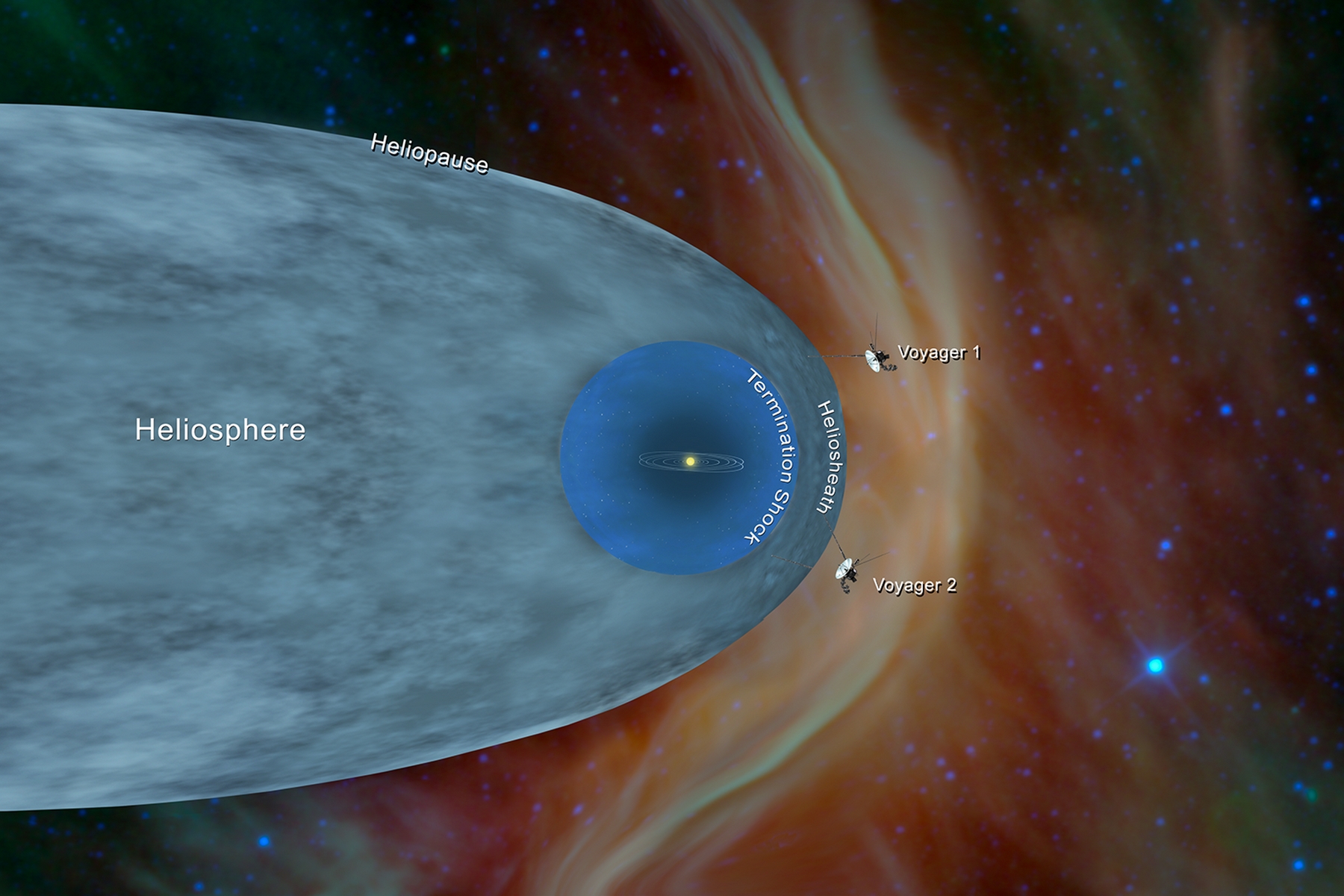Sonda Voyager 2 se již nachází v tzv. mezihvězdného prostoru. Aktuálně ji dělí od Země 120 AU. Její dvojče Voyager 1 se pohybuje ve vzdálenosti 145 AU.