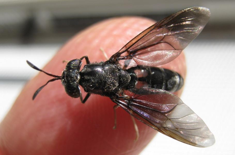 Bráněnka Hermetia illucens. Její larvy jsou zdrojem vysoce kvalitního hmyzího proteinu. (foto: Wikimedia Commons, Beatriz Moisset, CC BY-SA 4.0)