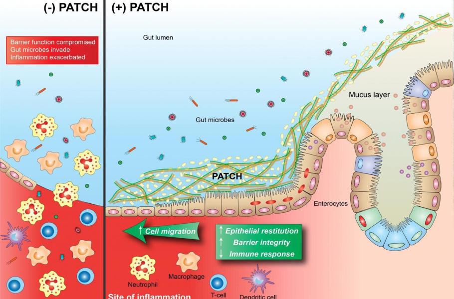 Základem tohoto „žijícího“ materiálu jsou geneticky upravené bakterie E. coli, které fungují jako lokální probiotika. Vytvářejí sítě nanovláken, které působí na zanícenou sliznici střeva jako ochranná náplast. Taková náplast chrání místo zánětu před všetečnými střevními bakteriemi i před působením okolního prostředí. Tvůrci svou léčbu již úspěšně vyzkoušeli na myších.