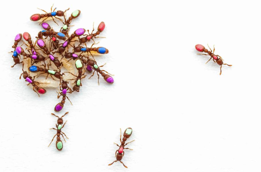 Mravenci Ooceraea biroi jsou pro podobné pokusy vhodní. Fungují totiž jako klonální společenstvo a rodí se z neoplozených vajíček, takže nepotřebují žádné královny. Pocházejí z Asie, ale dnes se invazně šíří v tropech a subtropech celého světa.