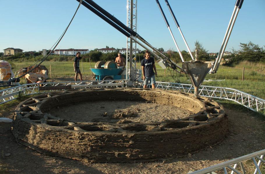 S dvanáctimetrovou tiskárnou si může každý vytisknout obydlí z bláta a slámy