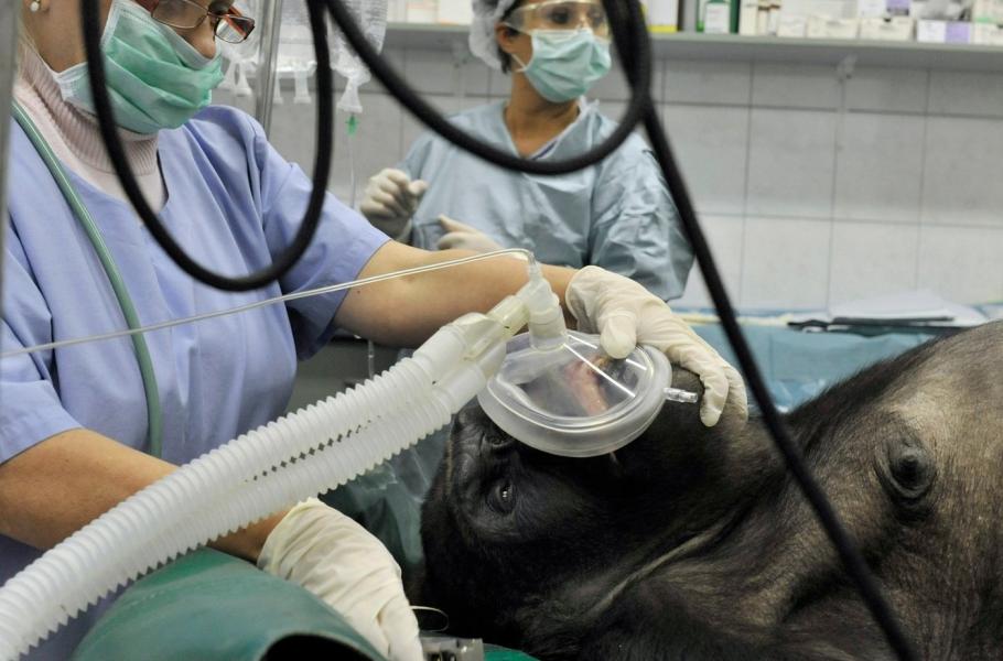 V roce 2009 podstoupila gorila Liesel náročné gynekologické vyšetření, během kterého strávila čtyři hodiny v celkové narkóze. Snímek pochází z této operace. (foto: Profimedia)