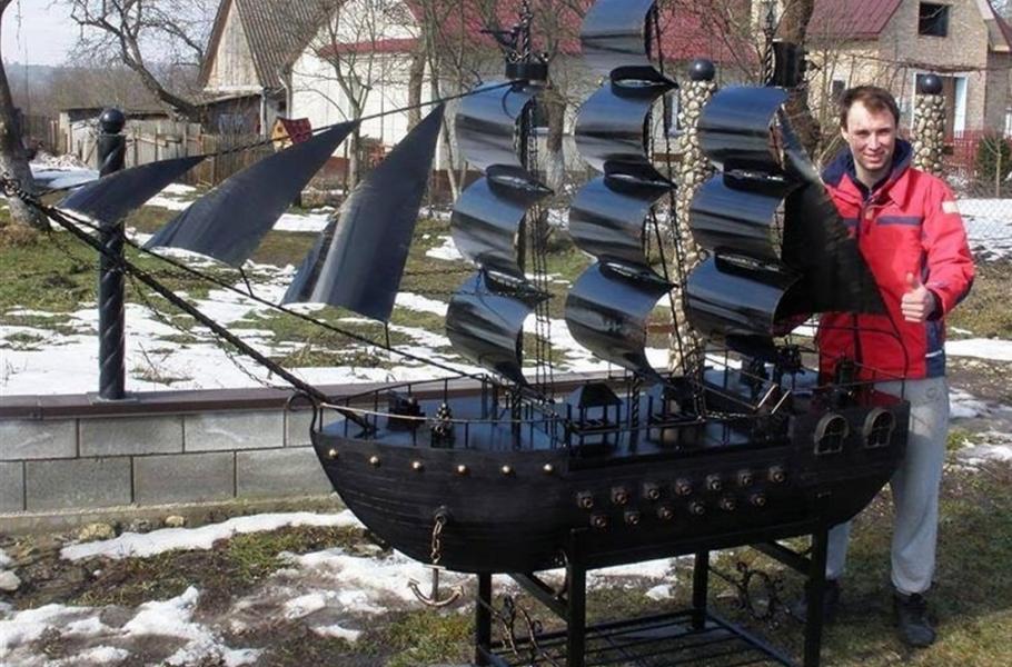 Ačkoli je sedmadvacetiletý Jaroslav Efremov z Kremence na Ukrajině profesí automechanik, rozhodně by se neztratil ani jako umělecký kovář. Jeho vlastnoručně vyrobená, dva metry dlouhá a sto kilogramů vážící loď má kromě své nesporné estetické hodnoty i ryze praktický rozměr. Ve skutečnosti se totiž jedná o originálním způsobem zpracovaný zahradní gril.