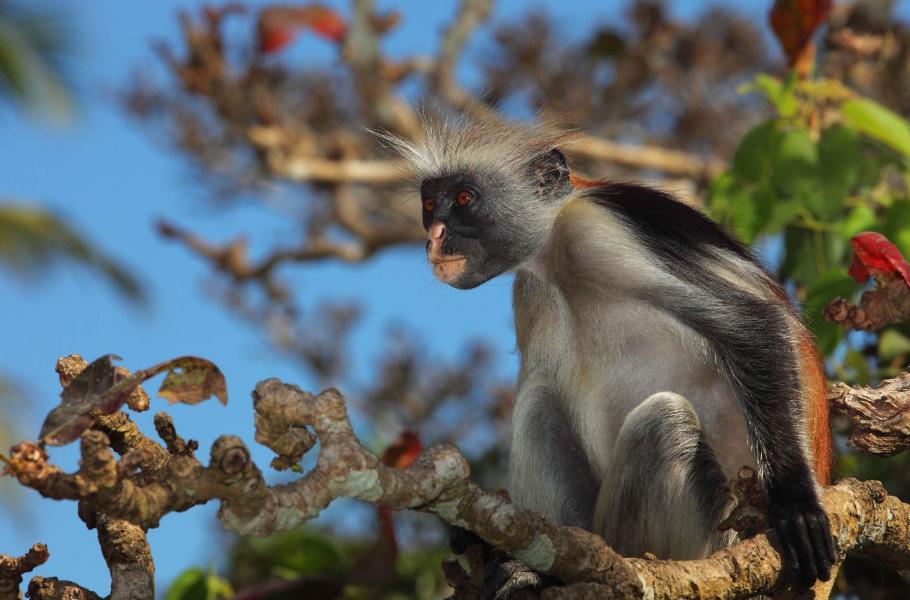 Gueréza červená zanzibarská (Piliocolobus kirkii) patří mezi nejvzácnější primáty světa. I když jsou tyto na pohled atraktivní opice chráněny zákonem, jejich počet neustále klesá a v současnosti se odhaduje na posledních 1 400 jedinců. Jediným místem, kde se guerézy červené volně pohybují, je Unguja, hlavní ostrov souostroví Zanzibar. Žijí tu v tlupách po 30–50 kusech, které jsou zpravidla tvořeny maximálně čtyřmi samci a převažující většinou samic a mláďat. Samci váží 9–13 kilogramů a narůstají do zhruba 45–72 centimetrů. Samice jsou v průměru o 2–3 kila lehčí, ale prakticky stejně veliké. Stejně jako všem guerézám, i těm zanzibarským chybí palec. Podle tohoto výrazného rysu vznikl i slovní základ latinského názvu – colobus totiž znamená zakrnělý, nebo také zmrzačený.