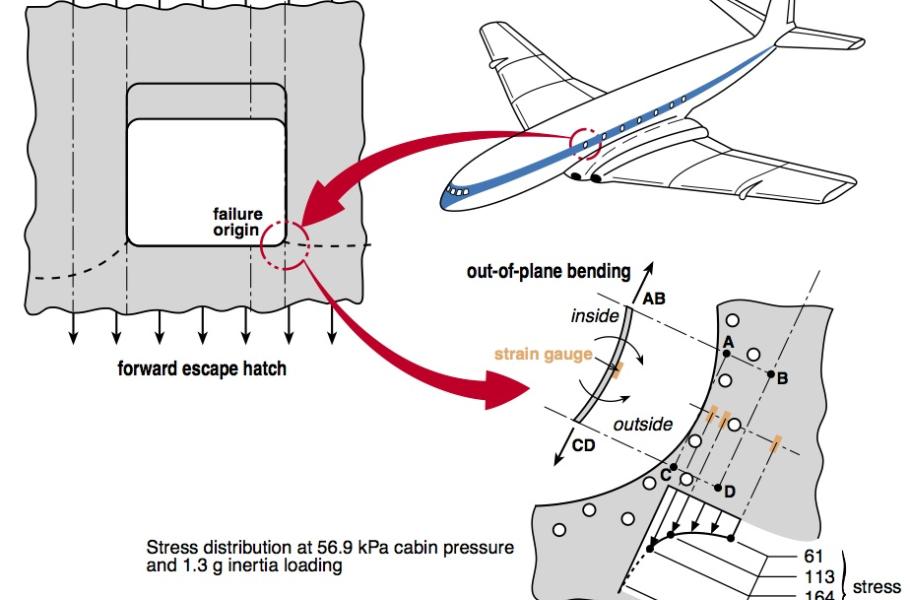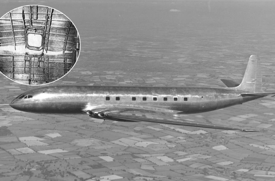 Vyšetřování ukázalo, že inženýři udělali u konstrukce jednu zásadní chybu: Ponechali v ní čtvercová okna. Ta však ve značných výškách znamenají riziko, kvůli mírnému rozdílu mezi atmosférickým tlakem a tlakem v letadle. Kabina se v důsledku toho nepatrně roztahuje, a na materiál tak vzniká nápor. Nejvíc přitom trpí okenní rámy, respektive jejich ostré rohy, a pokud pnutí překročí určitou míru, může okno i prasknout. U oválného okénka ovšem nic podobného nehrozí, jelikož v jeho okolí se tlak šíří podstatně plynuleji.