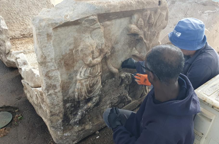 Zachovalá část sarkofágu s vyobrazeným Herkulem. (foto: Israel Antiquities Authority, Shatil Emmanuilov, CC BY-SA 4.0)