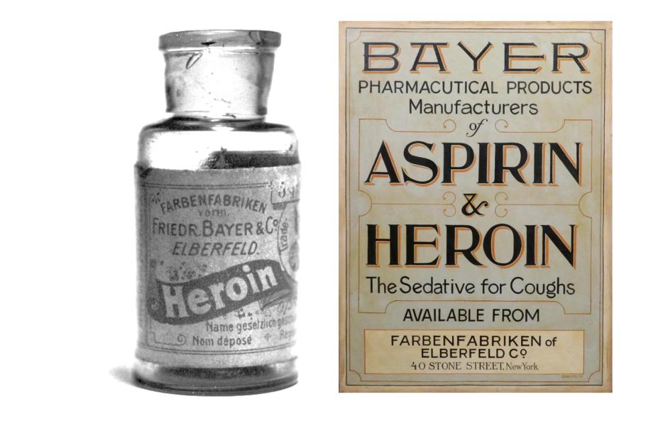 V 19. století se jako lék běžně používal samostatný morfin. Zvlášť oblíbený byl v chuťově příjemných kapkách nebo v sirupu paní Winslowové, jež lékaři hojně předepisovali dětem. Dával se i těm nejmenším, například proti bolesti při prořezávání zoubků nebo na průjem. Náhodné předávkování však způsobilo vyhasnutí stovek nešťastných životů, což vedlo odborníky ke zjištění, že je morfin návykový a ve větších dávkách toxický. Řešení naštěstí bylo po ruce: farmaceutická firma Bayer uvedla na trh nový preparát – heroin. Firma ho propagovala jako zcela nenávykový zázračný lék na obdobné problémy, a nový přípravek tak získal světový věhlas. Bohužel, opět šlo o šlápnutí vedle. Netrvalo ani dvacet let a jeho užívání autority zakázaly. Ukázalo se totiž, že heroin v těle metabolizuje právě na dříve zavržený morfin. (foto: Wikimedia Commons, CC0)