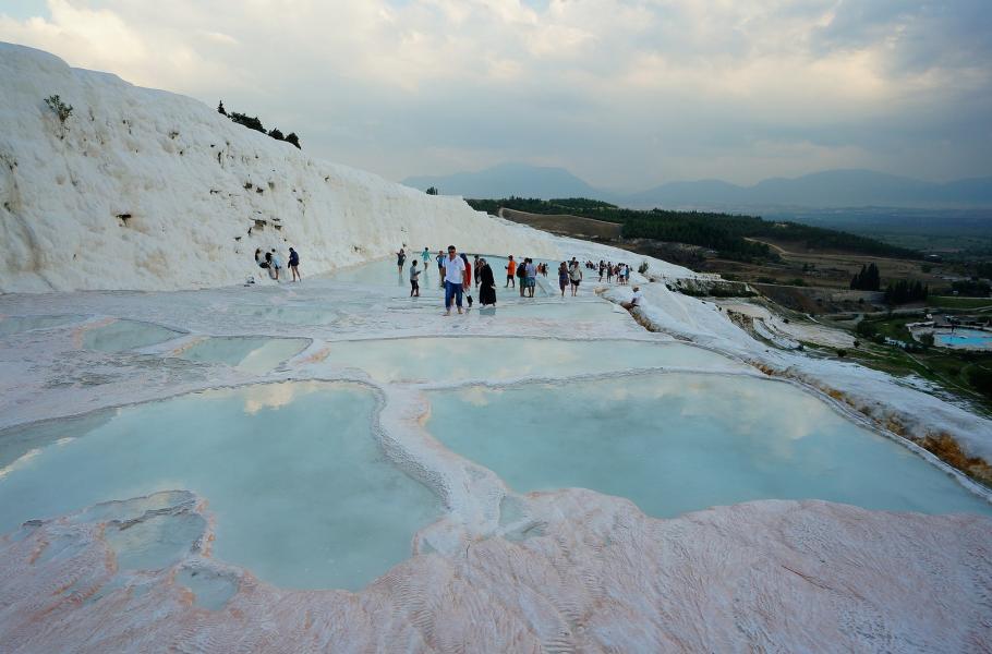 Krása se však Pamukkale stala téměř osudnou. Turečtí podnikatelé vybudovali přímo nad přírodním divem několik hotelů. Vodu pak odvedli z teras do jejich bazénů a Pamukkale začalo rychle šednout a drolit se. Naštěstí snaha o zachování velmi cenné přírodní památky zvítězila nad ekonomickým prospěchem, takže v 90. letech byly hotely zbourány. Dnes se po Pamukkale smí chodit pouze po vyznačených trasách a samozřejmě bez bot.