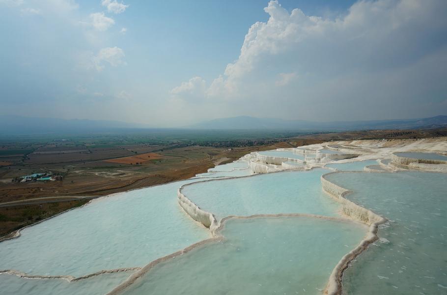 Přírodní i kulturní památka v jednom. To jsou vápencové terasy nazvané Pamukkale, doslova srostlé se zbytky antického města Hierapolis