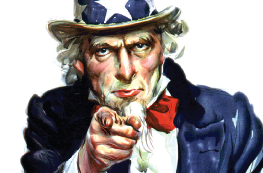 Portrét strýčka Sama, který má zosobňovat Ameriku, sloužil v roce 1917 jako armádní náborový plakát do bojů první světové války