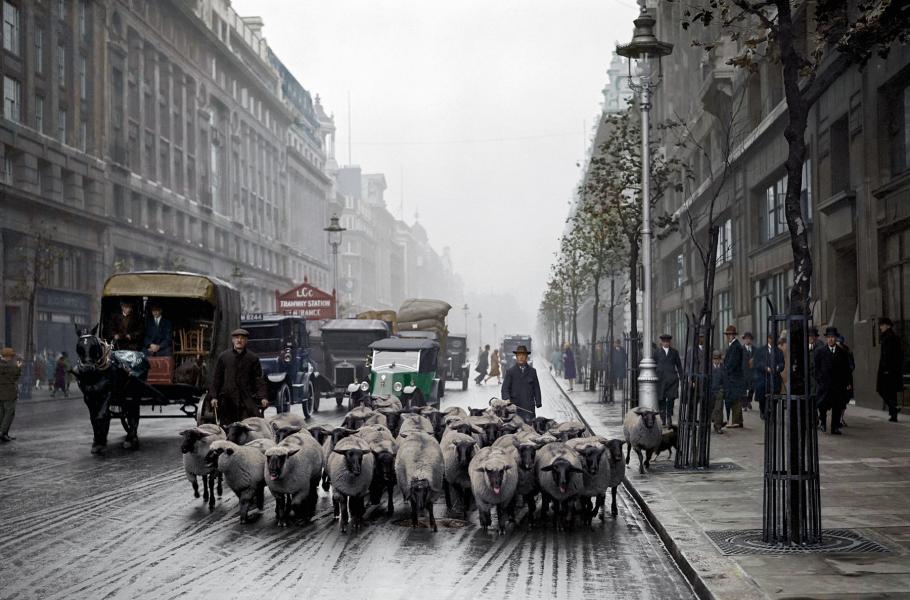 Historie v barvě: Když ulicemi Londýna pochodovala stáda ovcí
