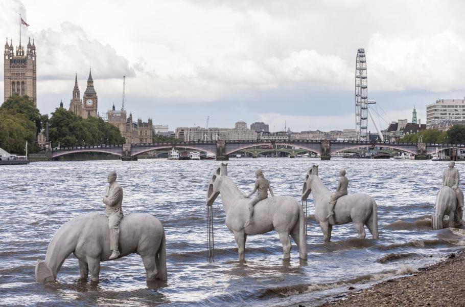 Čtyři jezdci apokalypsy od sochaře Jasona deCaires Taylora v řečišti londýnské Temže. Instalace má poukázat na nebezpečné změny klimatu.