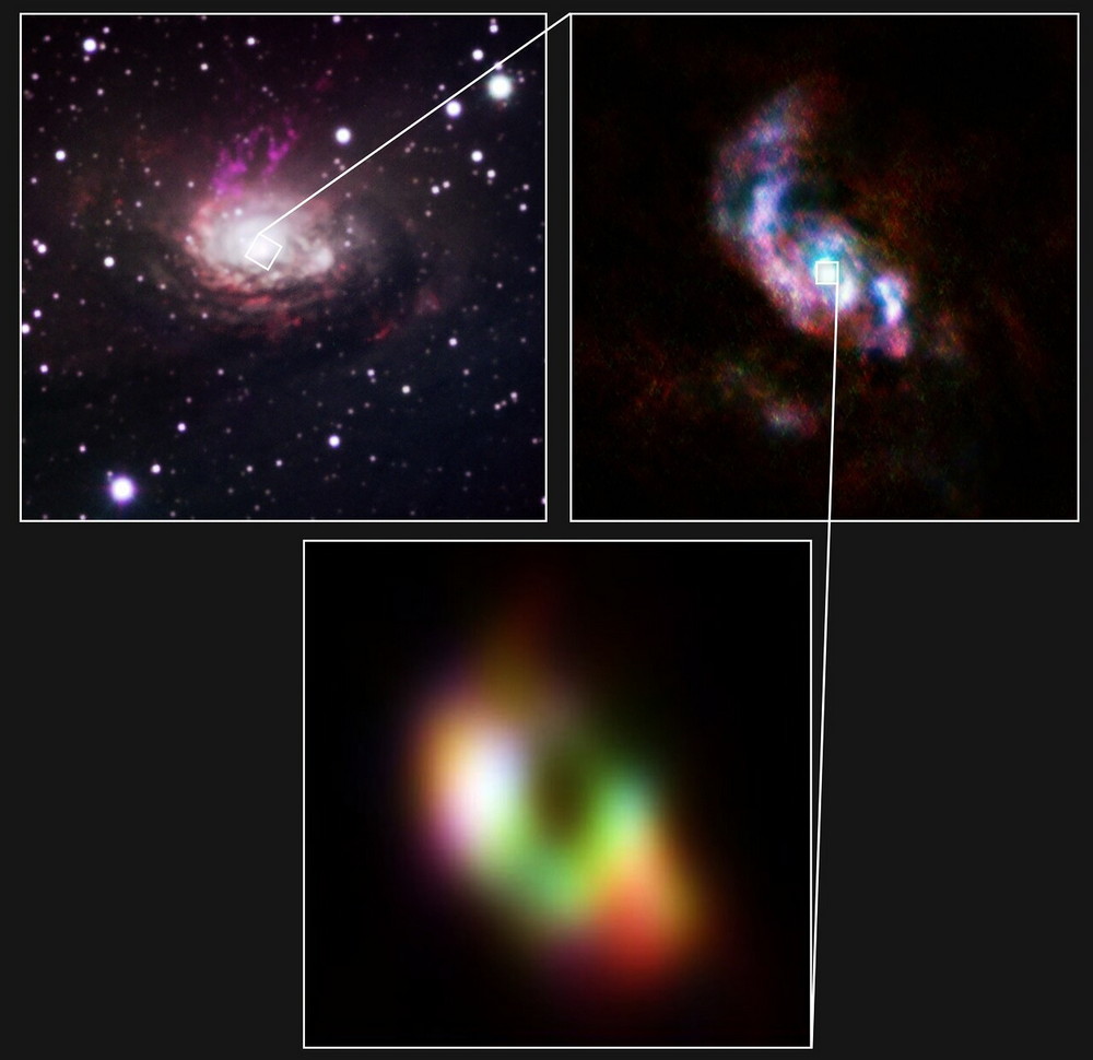 Badatelé zjistili, že dotyčná supermasivní černá díra ve skutečnosti vyjídá kosmický plyn současně ze dvou spirálních ramen této galaxie, která jsou napojená na prstenec hmoty, obklopující černou díru. Ukázalo se také, že v horizonu události zmizí jen poměrně malé procento plynu, který se pohyboval směrem k černé díře. Většina plynu je odvržena pryč, než se dostane k černé díře.