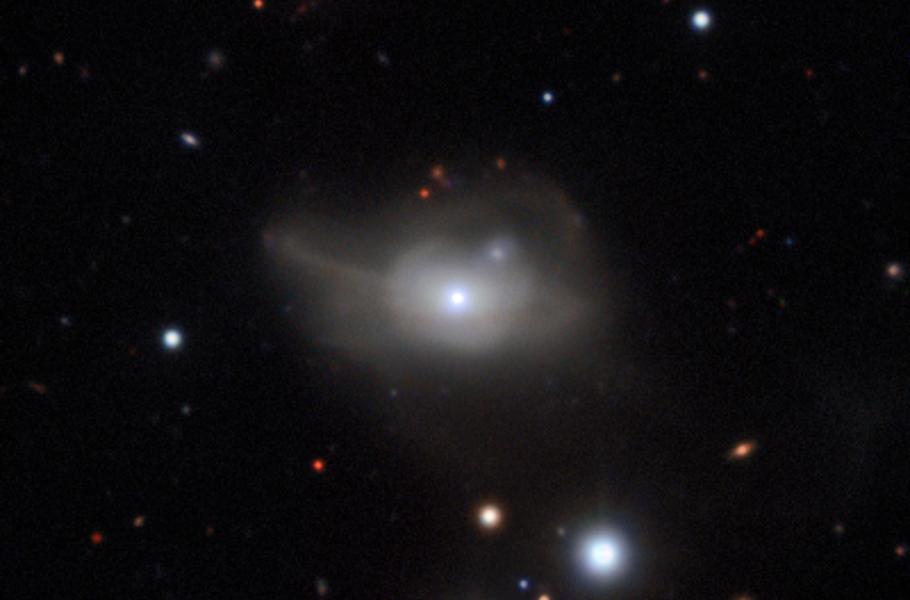 Snímek pořízený přístrojem MUSE zachycuje aktivní galaxii Markarian 1018, v jejímž centru se nachází superhmotná černá díra. Slabé světlejší oblouky táhnoucí se kolem středu galaxie jsou výsledkem interakce při procesu slévání s jinou galaxií v nedávné minulosti.