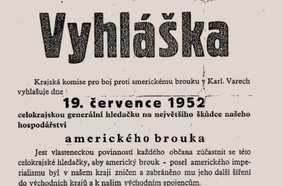 Jak se z malého brouka pojídajícího brambory mohl stát úhlavní nepřítel státu? Odpovědí je komunistická propagandistická kampaň 50. let, která se snažila občany přesvědčit, že mandelinku bramborovou do Československa uměle dopravovali „západní imperialisté“, jejichž cílem bylo okrást lid o úrodu, a tím sabotovat socialistické zřízení