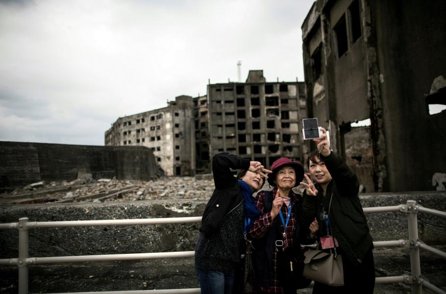 Během druhé světové války dolovali na ostrově uhlí otroci z Koreje a Číny – až 1 300 jich tam zahynulo. Dnes ostrov pohltil rozklad. Přesto, nebo právě proto, jej vyhledávají zástupy turistů.