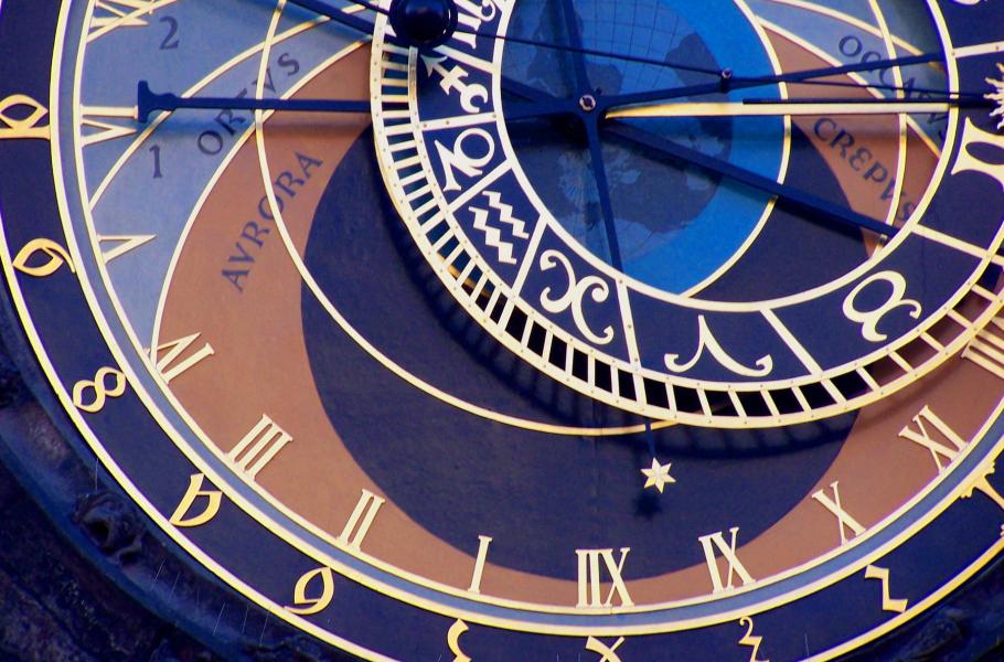 Siderický nebo též hvězdný čas zaznamenává pomocí šesticípé hvězdičky například Staroměstský orloj. Siderický čas hraje klíčovou roli v astronomii, protože ovlivňuje měření rotace Země a dalších vesmírných objektů vůči hvězdám. (foto: Wikimedia Commons, xllxt TxllxT, CC BY-SA 4.0)