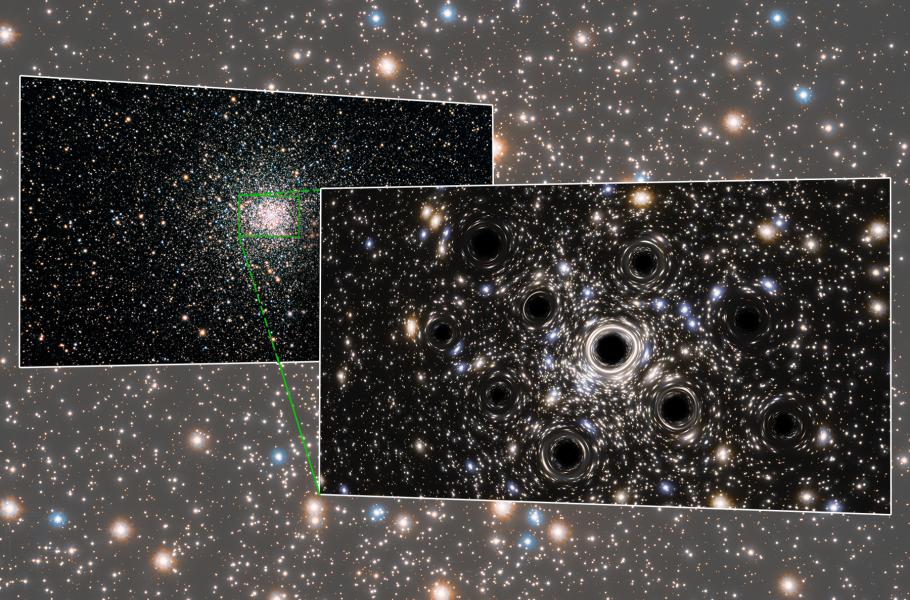 Vizualizace koncentrace černých děr v centru kulové hvězdokupy NGC 6397. Vědci předpokládají, že by jich mohlo být více než dvacet.