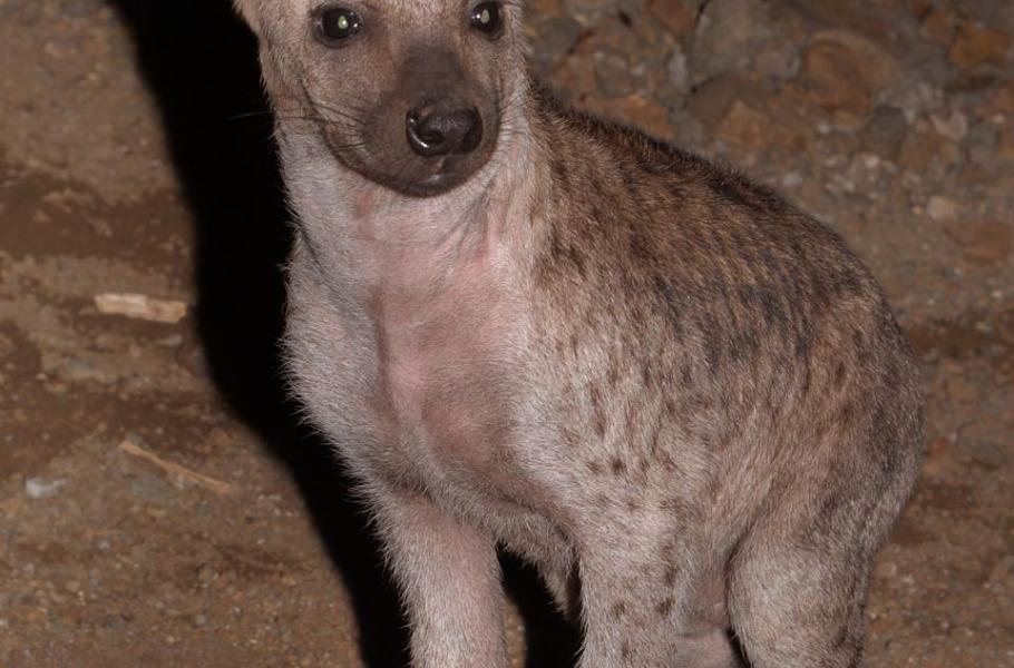 Hyena a její mládě byli napřed nejistí, ale potom získali odvahu. O několik chvil později se štěně s chutí vrhlo matce na břicho a hltavě sálo mléko.