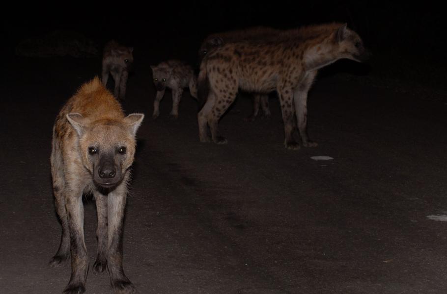 Při hodnocení „charakteru“ hyen je navíc potřeba vidět tyto tvory i v jiných životních situacích. Sám jsem k tomu měl skvělou příležitost, když jsem spěchal do nejbližšího místa noclehu u řeky Olifants (v jihoafrickém Krugerově národním parku) a mizící slunce povážlivě krátilo můj čas. Zbývalo mi už jen dvacet kilometrů. Pokud bych dodržoval povolenou čtyřicetikilometrovou rychlost, cesta by mi trvala už jen půl hodiny.