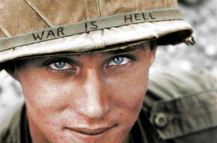 Toho dne působil Faas spolu se 173. výsadkovou brigádou v oblasti Phouc Vinh v jižním Vietnamu, kde vyfotografoval hezkého muže s pronikavě modrýma očima, jehož uhrančivý pohled i mladistvá tvář prozrazují nevinnost mládí. Zároveň však páska na helmě s nápisem „War Is Hell“ (Válka je peklo) poukazuje na skutečnost, že tento mladík již mnohé viděl a zažil. Tento a jemu podobné texty se staly jakýmsi němým protestem mnohých amerických vojáků proti válce. A právě tento kontrast – nevinnost mládí a prožité hrůzy války – se staly důvodem, proč měla média o snímek takový zájem.