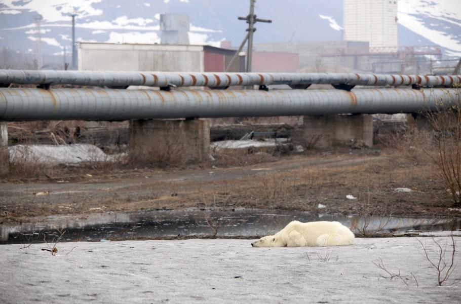 Letos v červnu obletěly svět fotografie vyzáblé lední medvědice. Překonala stovky kilometrů, než se ze svého přirozeného teritoria dostala až do sibiřského průmyslového města Norilsk, kde zřejmě hledala potravu. Podle fotografií a svědectví místních leželo apatické zvíře na norilském předměstí několik hodin. Občas se zvedlo a čichalo kolem, aby zavětřilo jídlo. Lední medvěd se v oblasti objevil po čtyřiceti letech. Náhlá pozornost médií mu zachránila život – úřady jej nechaly odchytit a přemístit do zoologické zahrady.