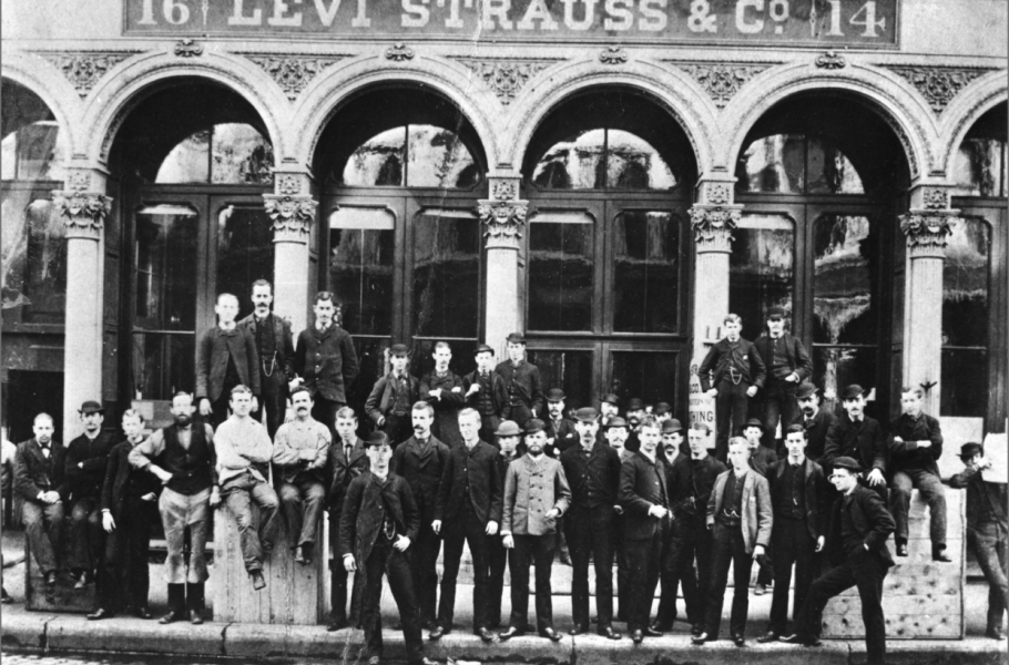 Když původně německý obchodník židovského původu Levi Strauss (rozený Löb Strauss) emigroval v roce 1853 do Kalifornie, zlákala jej jako statisíce jiných zlatá horečka. Zlatokopem se však nikdy nestal. Správně si totiž spočítal, že zástupy mužů lačnících po snadno získaném bohatství budou potřebovat patřičné vybavení. Zaměřil se tedy na výrobu stanů a plachet na koňské povozy a brzy se zrodil úspěšný obchodník.