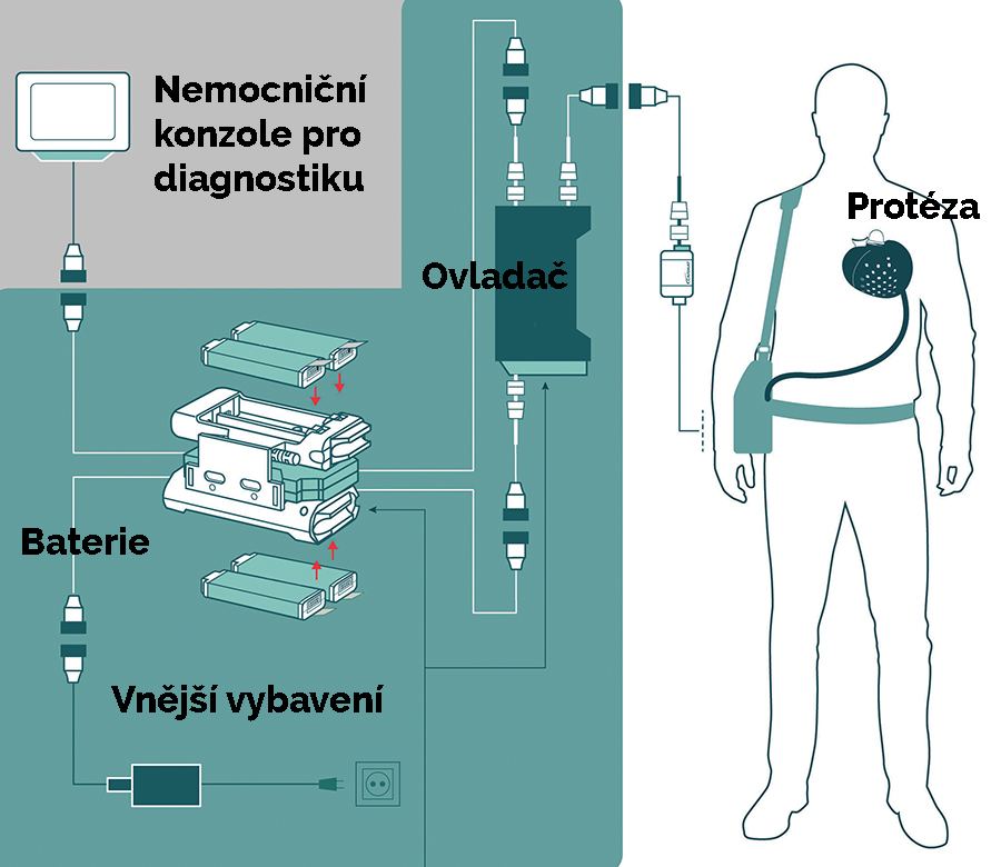 O stažení a roztažení srdečních svalů se stará dvojice mikropump, které pohybují membránami s využitím speciální pohonné tekutiny. Zabudované senzory vyhodnocují tělesnou zátěž.