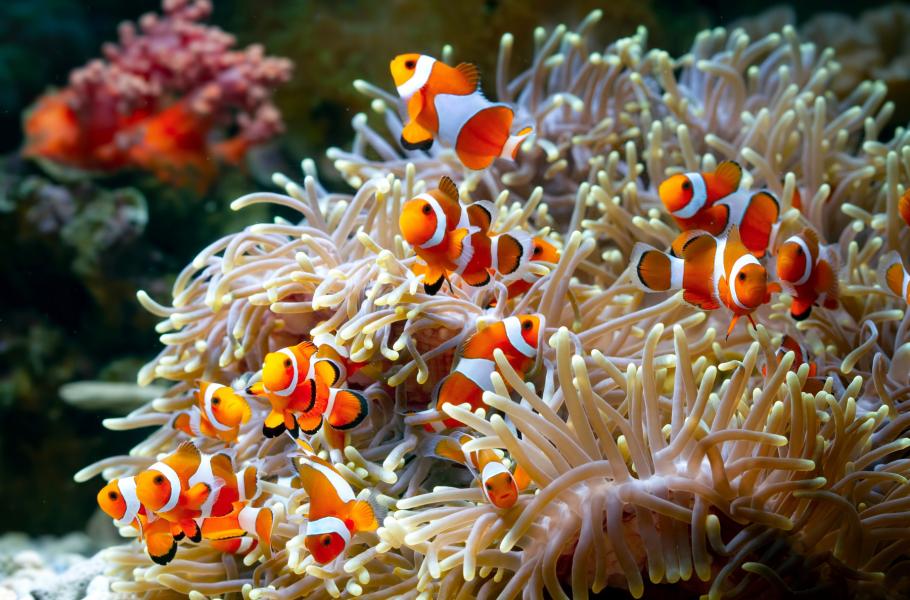 Klauni žijí v hloubkách do patnácti metrů a jejich útočištěm se často stávají mořské sasanky, jimž se zas daří v korálových útesech. Přestože jsou žahavé, klauni jim odolávají díky vrstvě ochranného slizu: Mohou se tedy skrýt v jejich útrobách a na oplátku je zbavují parazitů. (foto: Shutterstock)